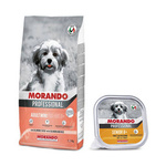 Jakie karmy dla psów MORANDO cieszą się największą popularnością? Bez wątpienia linia Professional dostępna w opakowaniach o różnych pojemnościach na przykład 150g, 300g, 400g, 2kg, a nawet 15 kg. Cielęcina, jagnięcina, kurczak, wołowina… marka oferuje wiele smaków, więc szybko wybierzesz ten preferowany przez pupila. Suche i mokre karmy dla psów MORANDO mają nawet ponad 30% świeżego mięsa, witaminy, minerały i niezbędne dodatki w postaci warzyw i owoców.
