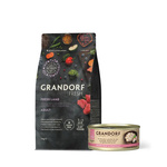Grandorf Cat Fresh Turkey Karma sucha dla dorosłych kotów z wrażliwym układem pokarmowym Indyk 2 kg + Karma mokra z kurczakiem i krabem 70 g Gratis