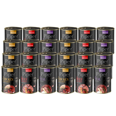 Zestaw składa się z:Piper Animals Junior Mokra karma dla psa z żołądkami z kurczaka i burakiem 400 g x 8