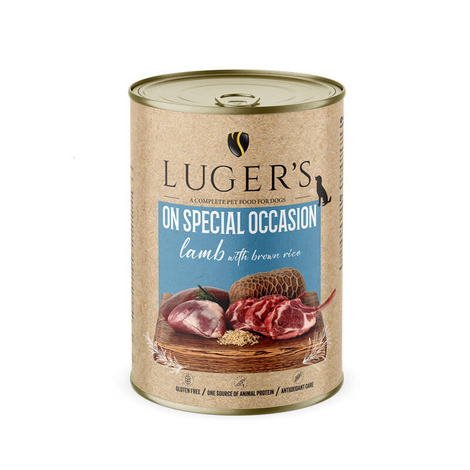 Luger's On Special Occasion z ryżem brązowym to monobiałkowy posiłek dostarczający Twojemu psu najwyższej jakości białko pochodzące wyłącznie z jagnięciny, która stanowi aż 75% składu. Oprócz mięsa zawiera podroby - wątrobę, płuca i serca, co zapewnia kompleksowe odżywienie i wspiera zdrowy rozwój oraz utrzymanie masy mięśniowej. Jagnięcina jest lekkostrawna, a jednocześnie bogata w niezbędne aminokwasy i witaminy z grupy B, które wspierają metabolizm oraz zdrowie układu nerwowego.