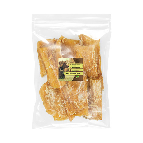 Gryzaki suszone - to naturalny w 100% gryzak dla psa, który stanowi doskonałą przekąskę. Podczas suszenia zachowuje wszystkie swoje naturalne składniki. Stanowi uzupełnienie zbilansowanej diety. Psy bardzo chętnie je zjadają. Może również stanowić doskonałą przekąskę podczas treningu jako nagroda. Stanowią właściwą florę bakteryjną przewodu pokarmowego pas. Zawierają dużą ilość białka przez co nadają się do spożycia przez szczeniaki i psy starsze. Nie zawierają żadnych konserwantów ani barwników.