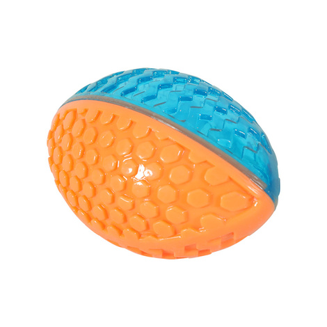 - Zabawka w kształcie piłki do rugby – idealna do aportowania i wspólnej zabawy.
