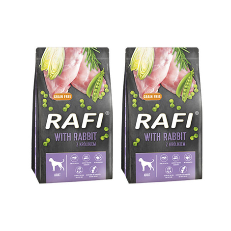 Jeśli sucha karma to ulubiony przysmak Twojego psa, podaj mu nową karmę Rafi z królikiem. Jej receptura uwzględnia zapotrzebowanie na wszystkie składniki odżywcze niezbędne do zachowania zdrowia i dobrej kondycji dorosłego psa. Surowce pochodzenia zwierzęcego wykorzystane w produkcji są źródłem wysokiej jakości pełnowartościowego białka, tłuszczu oraz wszystkich niezbędnych składników mineralnych i witaminowych. Królik jest surowcem szczególnie bogatym w łatwostrawne białko o wysokiej zawartości aminokwasów egzogennych. Olej z łososia i siemię lniane zapewniają prawidłowe proporcje kwasów tłuszczowych n-3 i n-6. Z kolei chondroprotetyki - glukozamina i siarczan chondroityny- poprawiają ruchomość stawów, zabezpieczając je przed zmianami w chrząstce stawowej. Dostarczenie składników o właściwościach prebiotycznych (fruktooligosacharydów, w tym inuliny oraz mannanooligosacharydów) sprzyja utrzymaniu równowagi w przewodzie pokarmowym, co w konsekwencji przekłada się na wiele funkcji życiowych dorosłego psa.