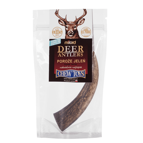 Który pies nie lubi podgryzać i żuć: zabawek, patyków czy przekąsek? Jeśli wszystkie zabawki znikają w mgnieniu oka, podaj swojemu pupilowi gryzak twardy dla psa poroże jelenia marki Milord. Rozpracowanie go zajmie zdecydowanie więcej czasu niż zwykle. Poroże nie pęka jak zwykła kość i jest bogate w łatwo przyswajalny szpik. Produkt został poddany obróbce termicznej eliminując ryzyko salmonelli i drobnoustrojów. Występuje w dwóch wariantach: połówki są przeznaczone dla psów mniejszych i tych, które z takim gryzakiem spotykają się po raz pierwszy. Poroże pełne dedykowane jest dla większych czworonogów.
