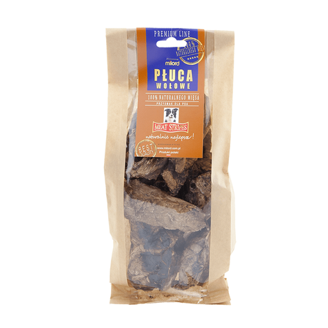 Płuca wołowe poddane odpowiedniej obróbce - suszenia za pomocą ciepłego powietrza, stanowią wyśmienity, aromatyczny i odpowiednio twardy przysmak dla psa. Niezależnie od wagi, wielkości i rasy pupila z pewnością zajmą go na dłuższy czas. Gryzak został wyprodukowany z polskiej wołowiny, jest bezpieczny gdyż nie zawiera konserwantów, barwników ani wzmacniaczy smaku i aromatu. Produkt jest bardzo wytrzymały, nie pęka i jest w całości trawiony przez psa. Odpowiednia struktura gryzaka, pomaga zniwelować kamień nazębny i dba o kondycję dziąseł, jednocześnie zaspokajając potrzebę żucia i gryzienia.