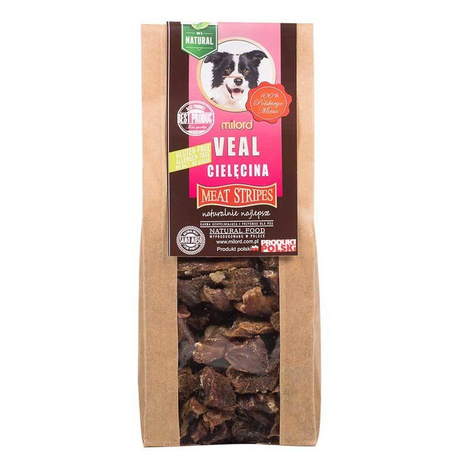 Tym smakowitym kąskom nie oprze się nawet największy niejadek - przysmak dla psa z cielęciny w formie kulek marki Milord to doskonała przekąska, szczególnie dla dużych ras. Ręcznie krojone mięso cielęce stanowi główny i jedyny składnik produktu. Jest on w 100% bezpieczny gdyż nie zawiera konserwantów, barwników, gliceryny czy wzmacniaczy smaku i aromatu. Do produkcji trafia tylko wyselekcjonowane, najwyższej jakości mięso, które po pokrojeniu poddawane jest obróbce ciepłym powietrzem w niskich temperaturach. Taki zabieg sprawia, że przysmak jest sprężysty, smaczny i zachowuje swoje wartości odżywcze.