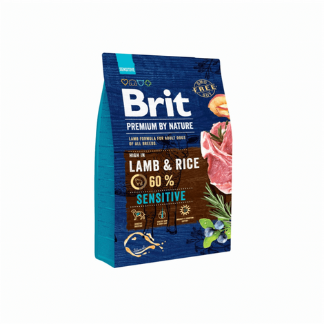 Pełnoporcjowa sucha karma Brit Premium by Nature Sensitive to idealne rozwiązanie w żywieniu dorosłych psów wszystkich ras z wrażliwym układem pokarmowym oraz tych, u których często występują alergie. Lekkostrawna jagnięcina i ryż stanowią podstawę składu karmy. Jej formuła została pozbawiona soi, kukurydzy oraz pszenicy, czyli najczęstszych alergenów. Sucha karma Brit Premium by Nature zawiera odpowiednio zbilansowane składniki odżywcze, niezbędne witamin i minerały, tak by nie obciążać pracy układu trawiennego. Karma poprawia kondycję skóry i sprawia, że sierść jest zdrowa i lśniąca. Dodatki funkcjonalne znajdujące się w składzie wspierają naturalną odporność, a także ogólną kondycję organizmu psa. Owoce i zioła regulują pracę jelit, a także poprawiają smak codziennego posiłku.