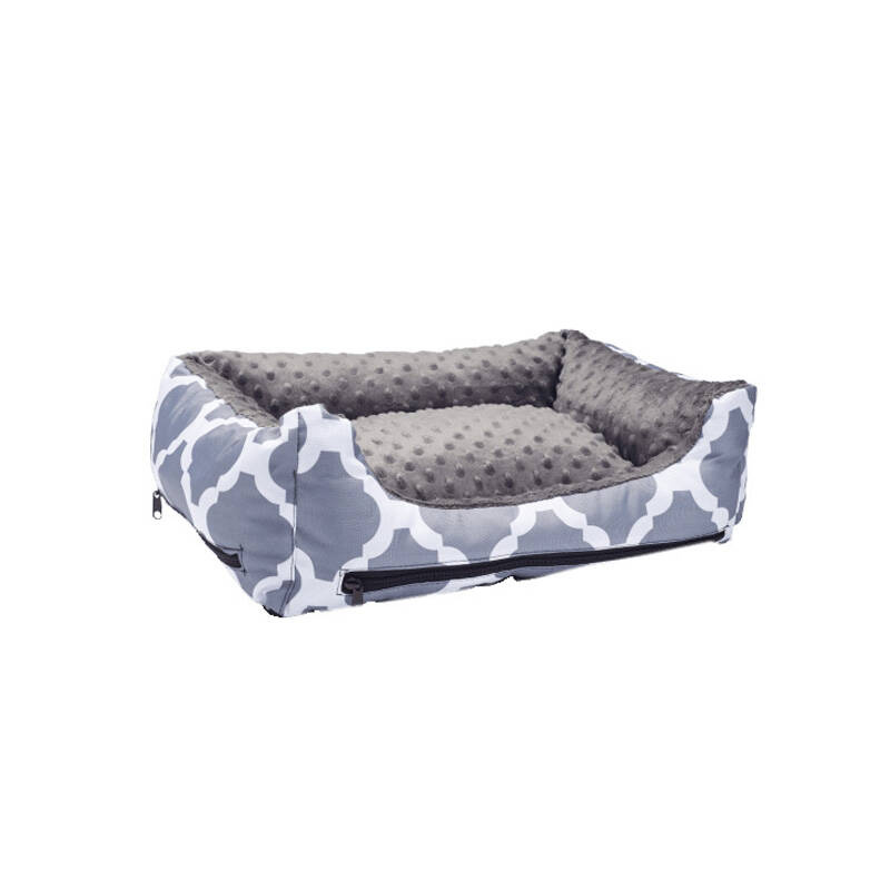 Boki oraz spód legowiska wykonano z miękkiego, stabilnego, wytrzymałego i wzorzystego materiału.