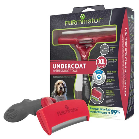 Narzędzie FURminator® do usuwania podszerstka dla długowłosych psów olbrzymich ras (XL). Narzędzie zaprojektowane specjalnie dla psów o masie ciała powyżej 41 kg o sierści dłuższej niż 5 cm. Produkt został zaprojektowany w celu promowania zdrowej skóry i sierści u zwierząt domowych oraz znacznego zmniejszenia ilości włosów, które każdego dnia zwierzę gubi i roznosi po domu. Pozwala skutecznie usuwać podszerstek i martwy włos, redukując linienie do 99%. Osłonięte krawędzie zapobiegają podrażnianiu skóry i chronią urządzenie podczas jego przechowywania dzięki technologii Edge Guard. Łatwy w obsłudze. Intuicyjne czyszczenie.