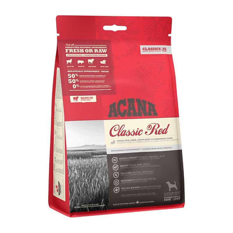 NAJLEPSZE I NAJŚWIEŻSZE SKŁADNIKI KANADY ACANA CLASSICS Classic Red przepełnione jest jagnięciną, wołowiną angus oraz wieprzowiną yorkshire. Mięso dostarczane jest codziennie świeże lub surowe w odpowiednich proporcjach diety WholePrey™. Jedzenie ACANA CLASSICS Classic Red pełne jest wartości odżywczych, które gwarantują szczytową formę Twojego psa.
