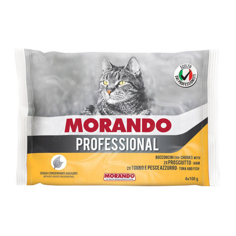Morando Pro Kot Kawałki Szynka/Tuńczyk Ryba 4 x 100 g