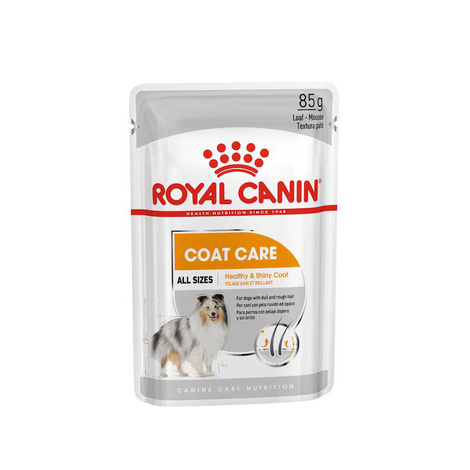 Karma ROYAL CANIN® Coat Care jest odpowiednia dla psów wszystkich wielkości, o matowej i łamliwej sierści. Osiągnięcia wieloletnich, zaawansowanych badań naukowych w dziedzinie żywienia psów są teraz do Twojej dyspozycji, dzięki karmie, która doskonale odżywia sierść i cały organizm Twojego psa. Dobrym odzwierciedleniem zdrowia Twojego psa jest jakość jego sierści. Gęsta i lśniąca jest świadectwem odżywienia organizmu. Precyzyjnie opracowana receptura ROYAL CANIN® Coat Care w formie pasztetu, odżywia skórę i sierść Twojego psa, zapewniając mu nie tylko piękny wygląd, ale i zdrowie. Karma została wzbogacona w kwasy tłuszczowe omega 3 i omega 6, oraz bogaty w GLA olej z ogórecznika, pomagające odżywić skórę i sierść Twojego psa. Ponadto, zawarte w karmie ROYAL CANIN® Coat Care prekursory melaniny, tyrozyna i fenyloalanina, wspomagają intensywne wybarwienie sierści Twojego psa. Program żywienia Coat Care obejmuje dwa produkty. Zarówno chrupiące krokiety, jak i delikatny pasztet są optymalnie zbilansowane, stanowiąc kompletne rozwiązanie żywieniowe zestawienie. Podaj psu delikatny pasztet w połączeniu ze smakowitymi krokietami!