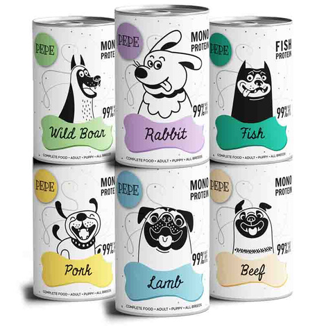 Paka Zwierzaka Karma mokra dla psa PEPE Pork (wieprzowina) mix smaków 6 x 400 g
