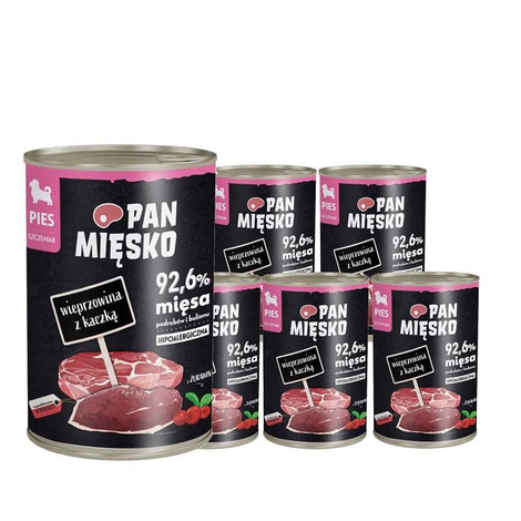 Pan Mięsko karma mokra dla psa Wieprzowina z kaczką dla szczeniąt zestaw 6 x 400 g