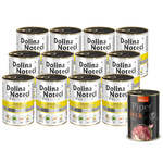 Mokra karma dla psa Dolina Noteci Premium bogata w cielęcinę z zielonym groszkiem zestaw 12 x 400 g + Piper Animals z kaczką i gruszką 400 g Gratis