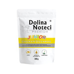 Mokra karma dla psa junior Dolina Noteci Premium bogata w serca wołowe zestaw 24 x 400 g